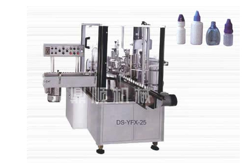 DS-YFX-25型全自動眼藥水灌裝機是灌裝、上內塞、壓內塞、上外蓋、旋外蓋、 PLC 控制等主要部分組成。本機通過凸輪傳動,定位準確,傳動平穩, PLC 自動控制灌裝、壓內塞、旋蓋等全過程。并可配置全自動注塑機,由吹瓶直接進入灌裝系統,防止交叉感染,整個過程全部在無菌條件下完成。無需洗瓶和烘干。